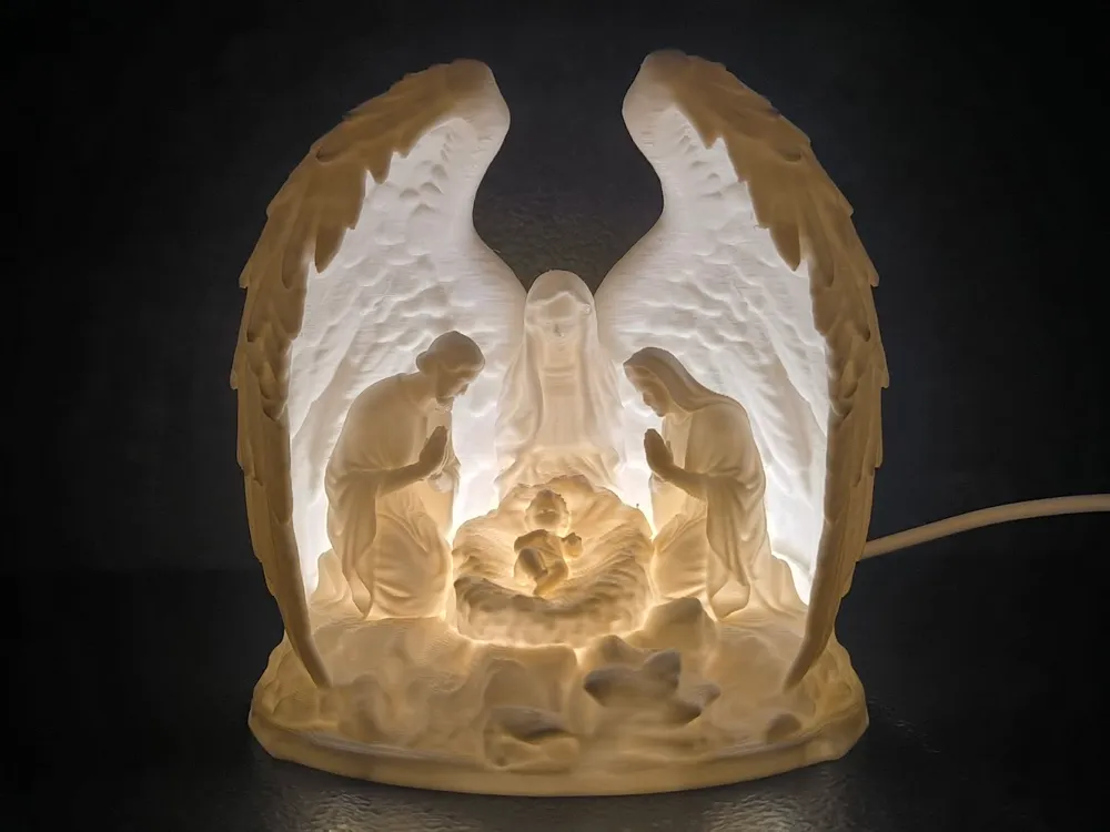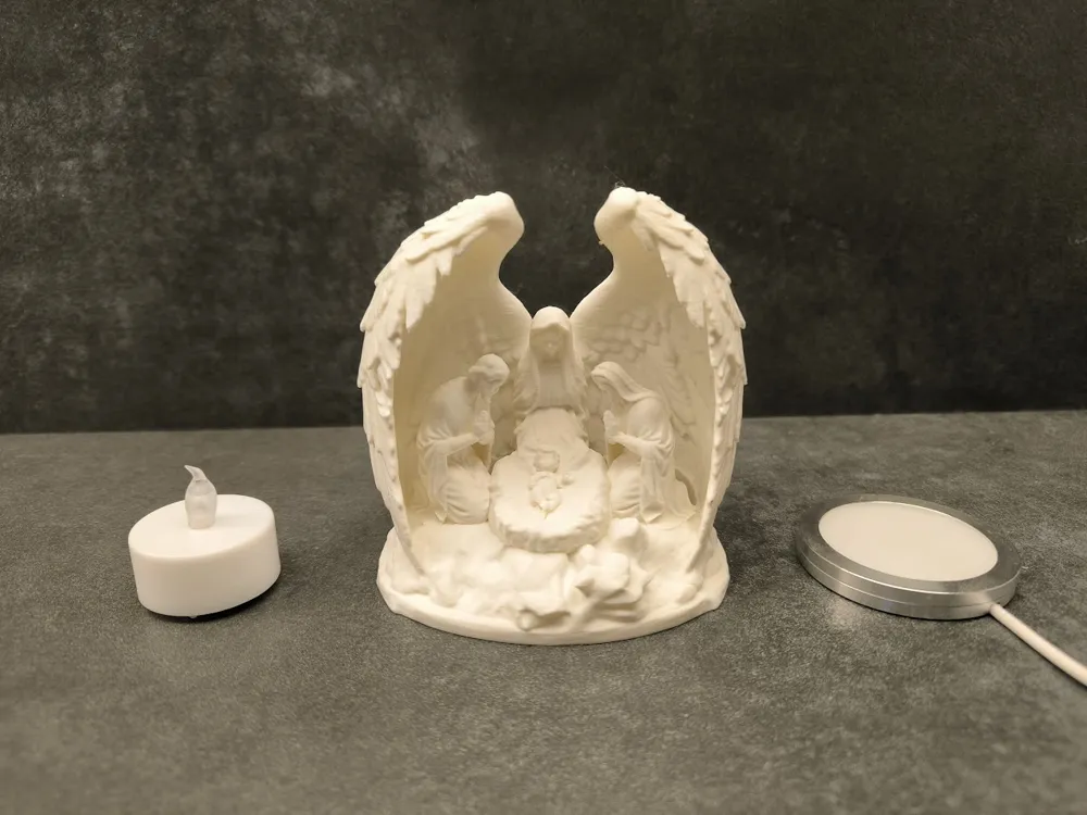 A beautifully detailed 3D printed illuminated nativity scene, where soft lighting brings depth, warmth, and a peaceful glow to this meaningful and artistic display.